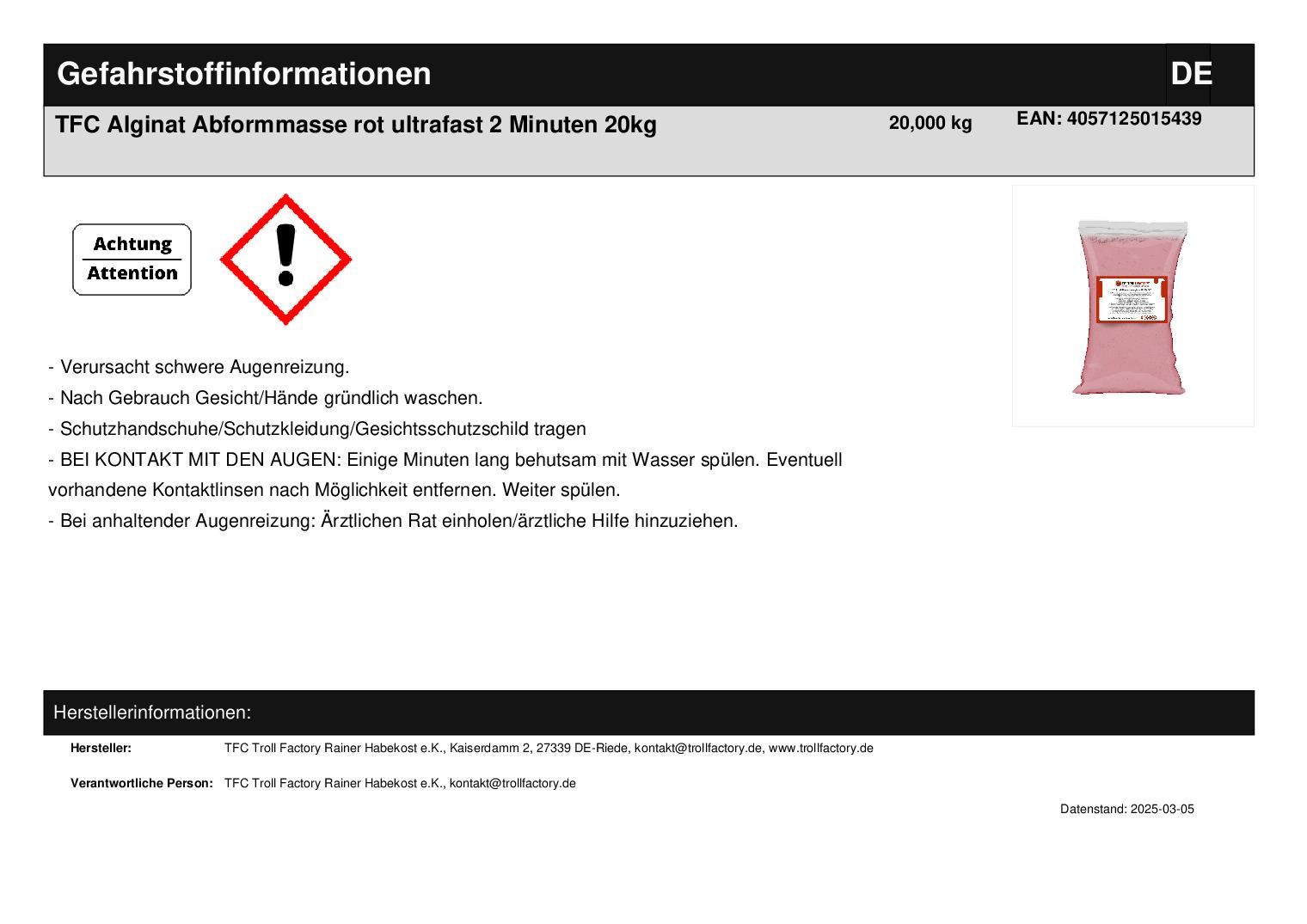 Produktinformationen "TFC Alginat Abformmasse rot ultrafast 2 Minuten"