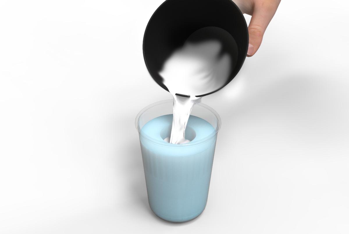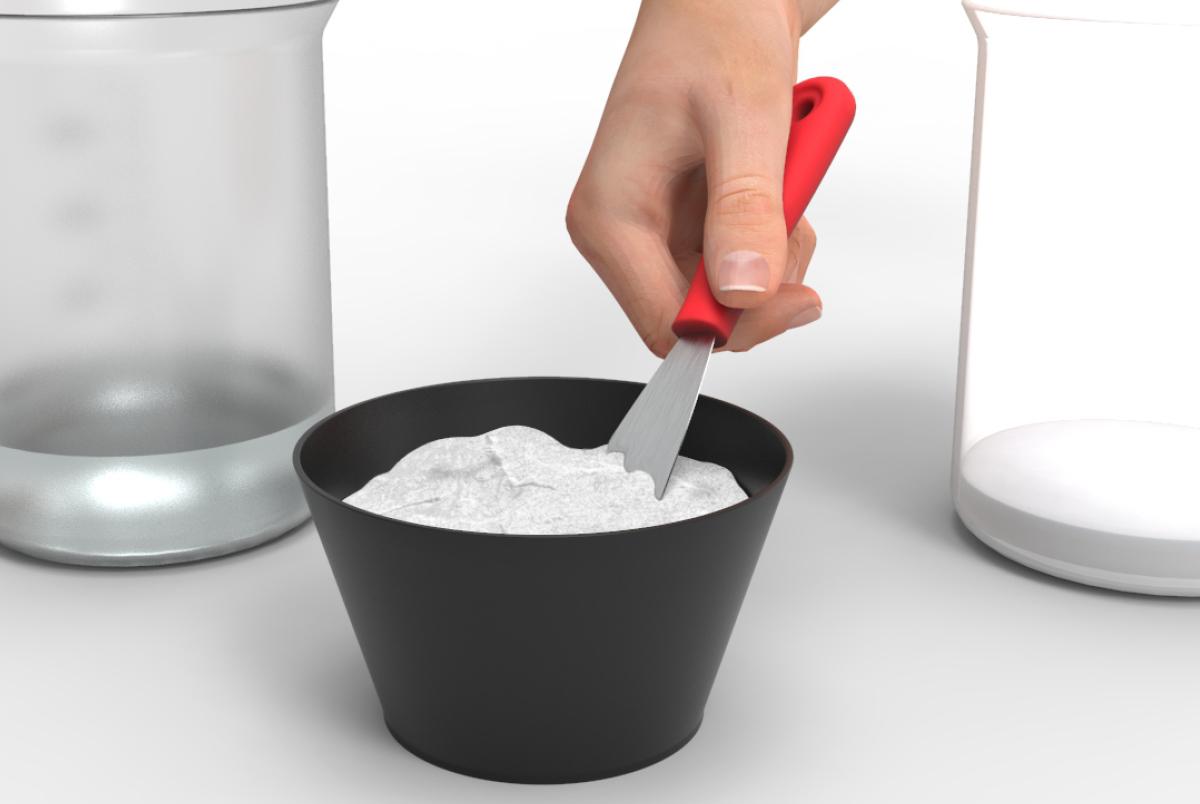 Für eine klumpenfreie Mischung geben Sie das Alginat portionsweise in das Wasser.