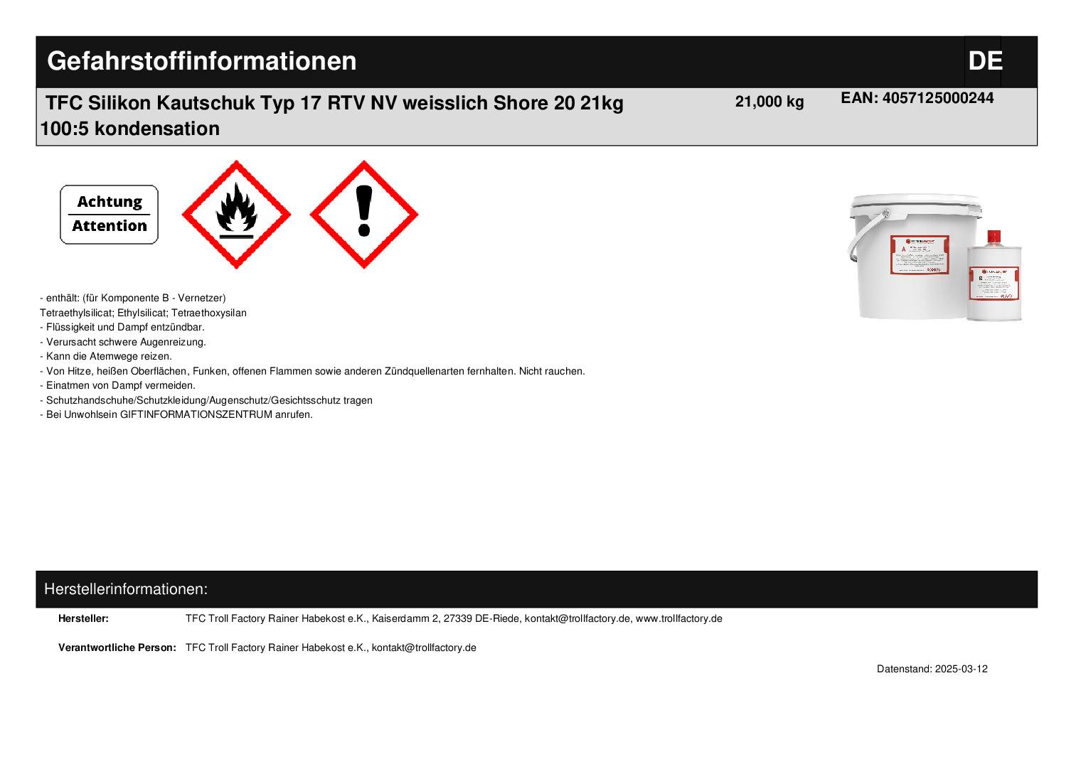 Produktinformationen "TFC Silikon Kautschuk Typ 17 RTV NV weisslich Shore 20 kondensation 100:5"