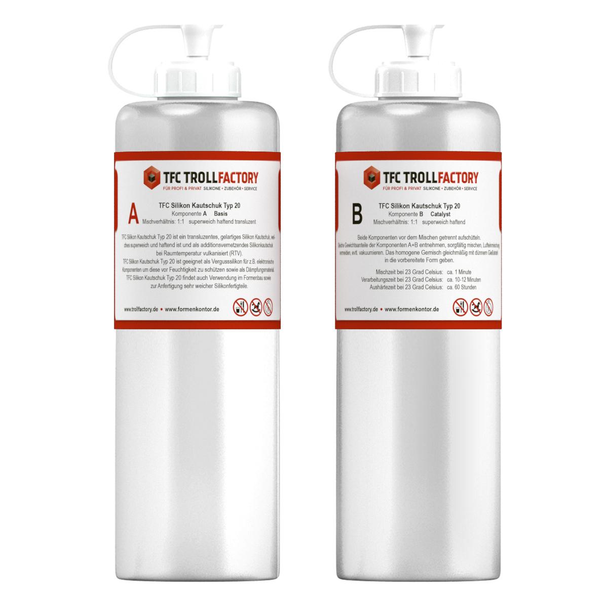 Produktinformationen "TFC Silikon Kautschuk Typ 20 Verguss transluzent Shore 1:1 superweich haftend gelartig"