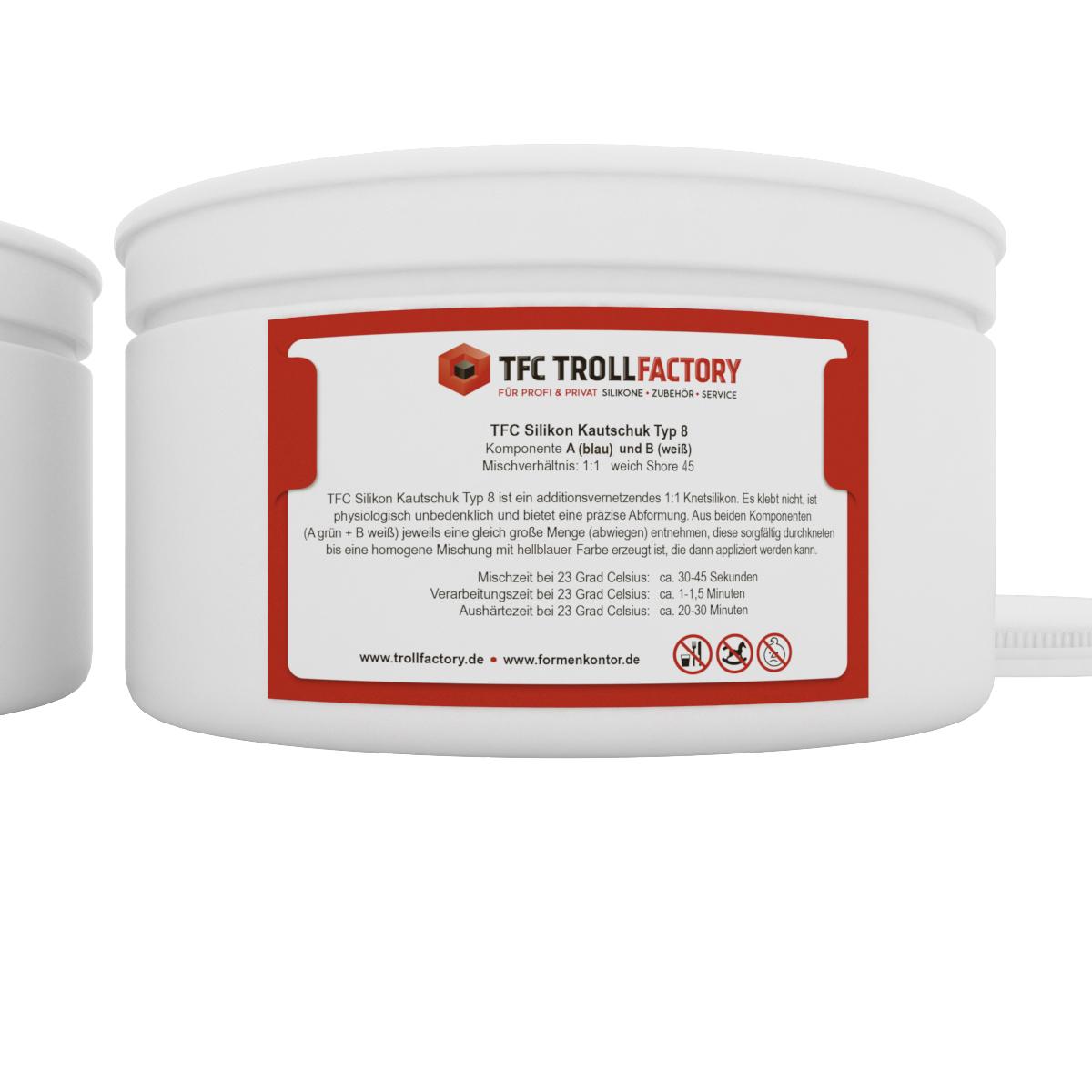 Produktinformationen "TFC Silikon Kautschuk Typ 8 Knetsilikon knetbar mittelhart Shore 45 1:1"