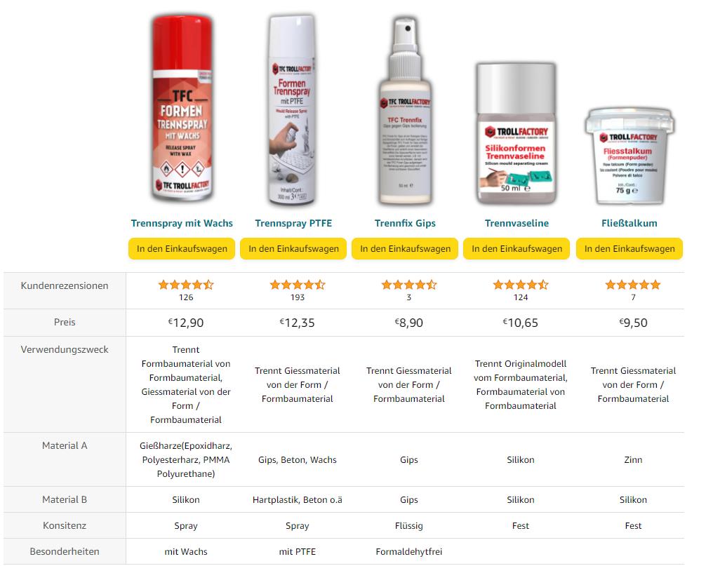TFC Trennvaseline dient als Trennmittel bei der Anfertigung mehrteiliger Silikonformen, trennt dabei Silikon von Silikon sowie Silikon Kautschuk von anderen Materialien und Oberflächen bei der Abformung von Originalmodellen.