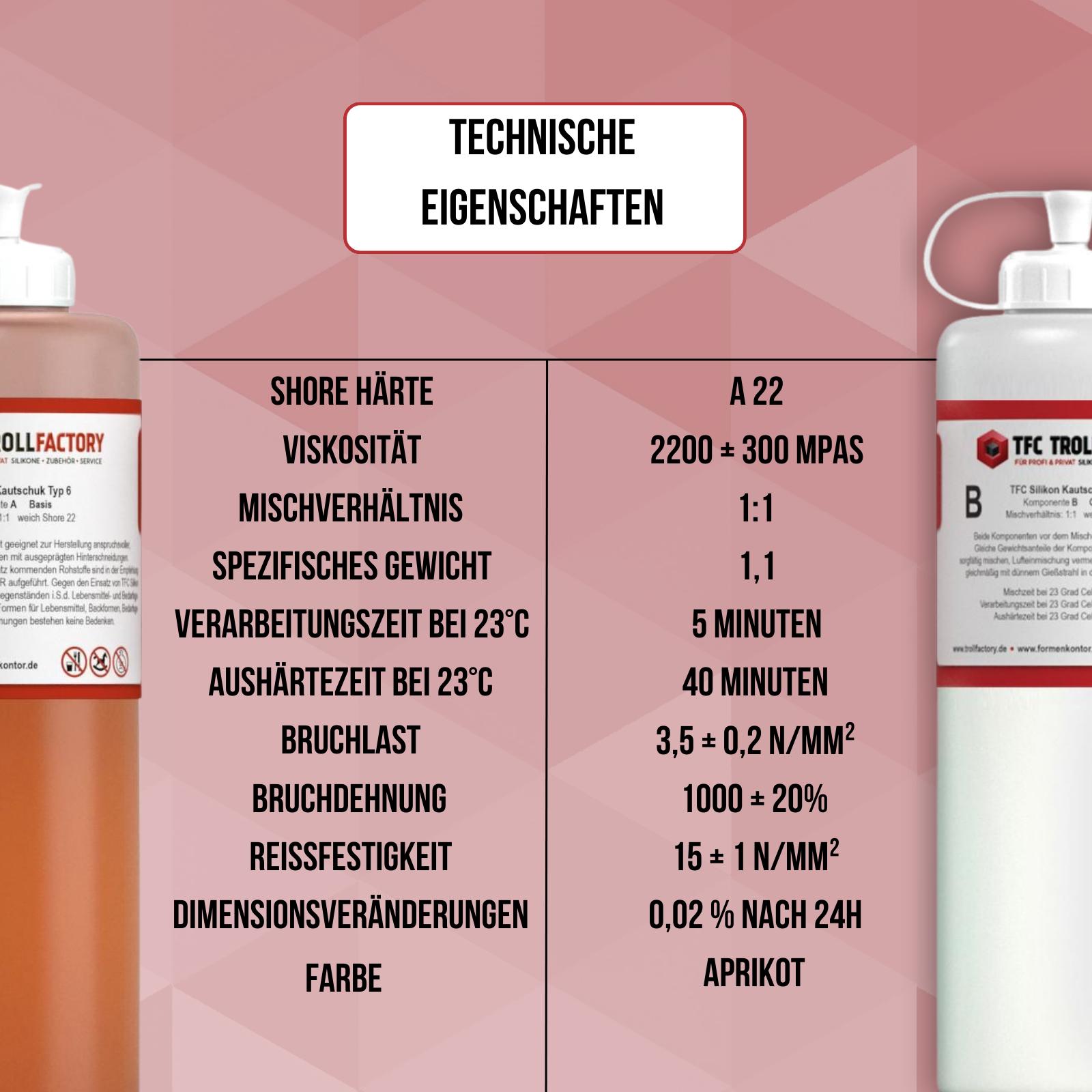 TFC Troll Factory Silikon Kautschuk Typ 6 Lebensmittel aprikot weich Shore 22 1:1