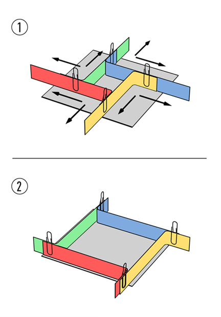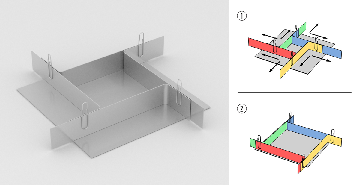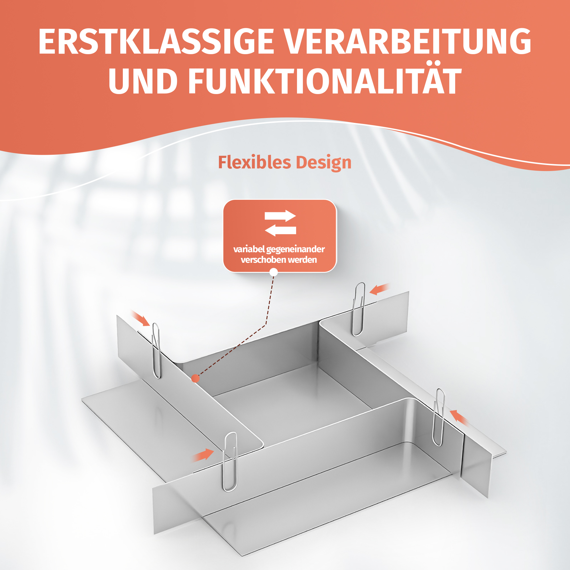 Die 4 Winkelbleche können variabel gegeneinander verschobenen werden,