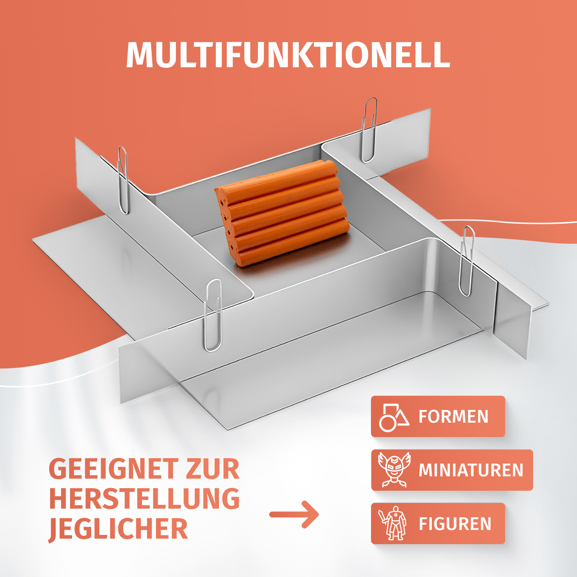 Sollte es erforderlich sein, größere Objekte zu umschließen, so kann man die Bleche mehrerer Formbaurahmen zu einem größeren Gießkasten problemlos zusammenfügen.