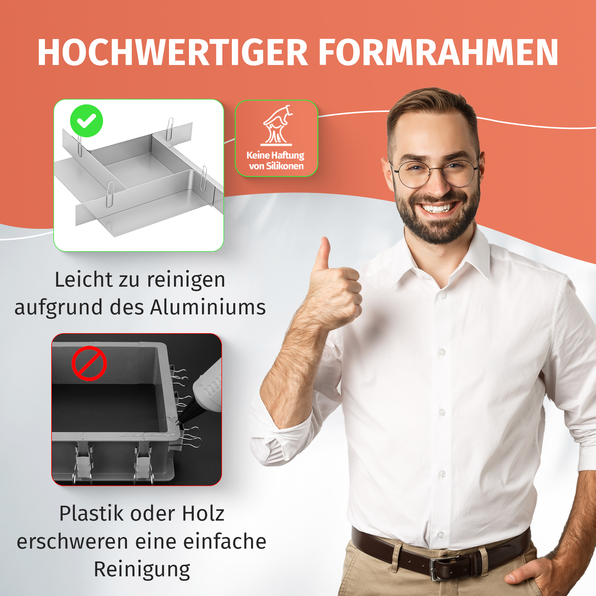 Riefen oder Schleifspuren ergeben. Das ist normal und bedeutet keinen Mangel - die Funktionsweise wird dadurch nicht beeinträchtigt. Sie erhalten immer einen neuen, unbenutzten Formenrahmen.